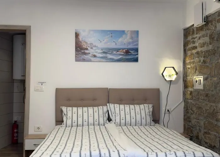 Morski Val 아파트는 평면 스크린 TV, 커피 및 티 메이커, 업무용 책상을 제공합니다. 이 아파트는 최대 2명까지 수용할 수 있습니다. 깃털 베개, 리넨도 있습니다. 헤어드라이어, 수건 제공하는 욕실에는 샤워, 비데 있습니다.
